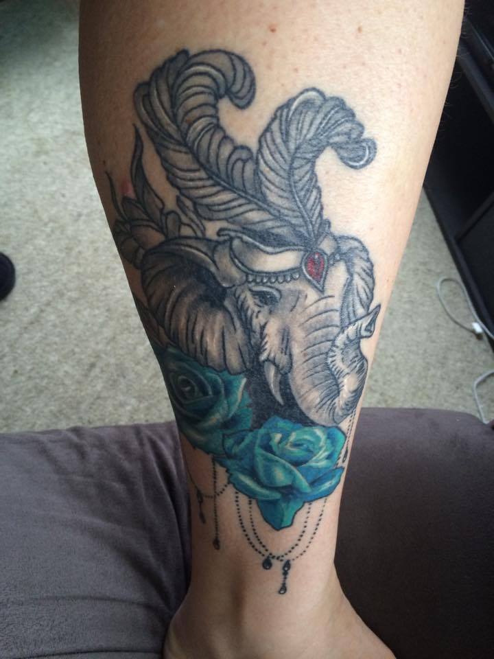 With that sorted, I went off to get the first part of my new tattoo done. My favourite tattooist did the perfect design as always, he so get's me and what I like. So we got to work and got the outline and shading done. This tattoo is for my parents. My beautiful Mum loves Elephants and my Dad has always called me his Rosebud and he now calls my girl, his granddaughter, his Rosebud 2. My Dad is also English, so the Roses can also symbolise the English Rose.